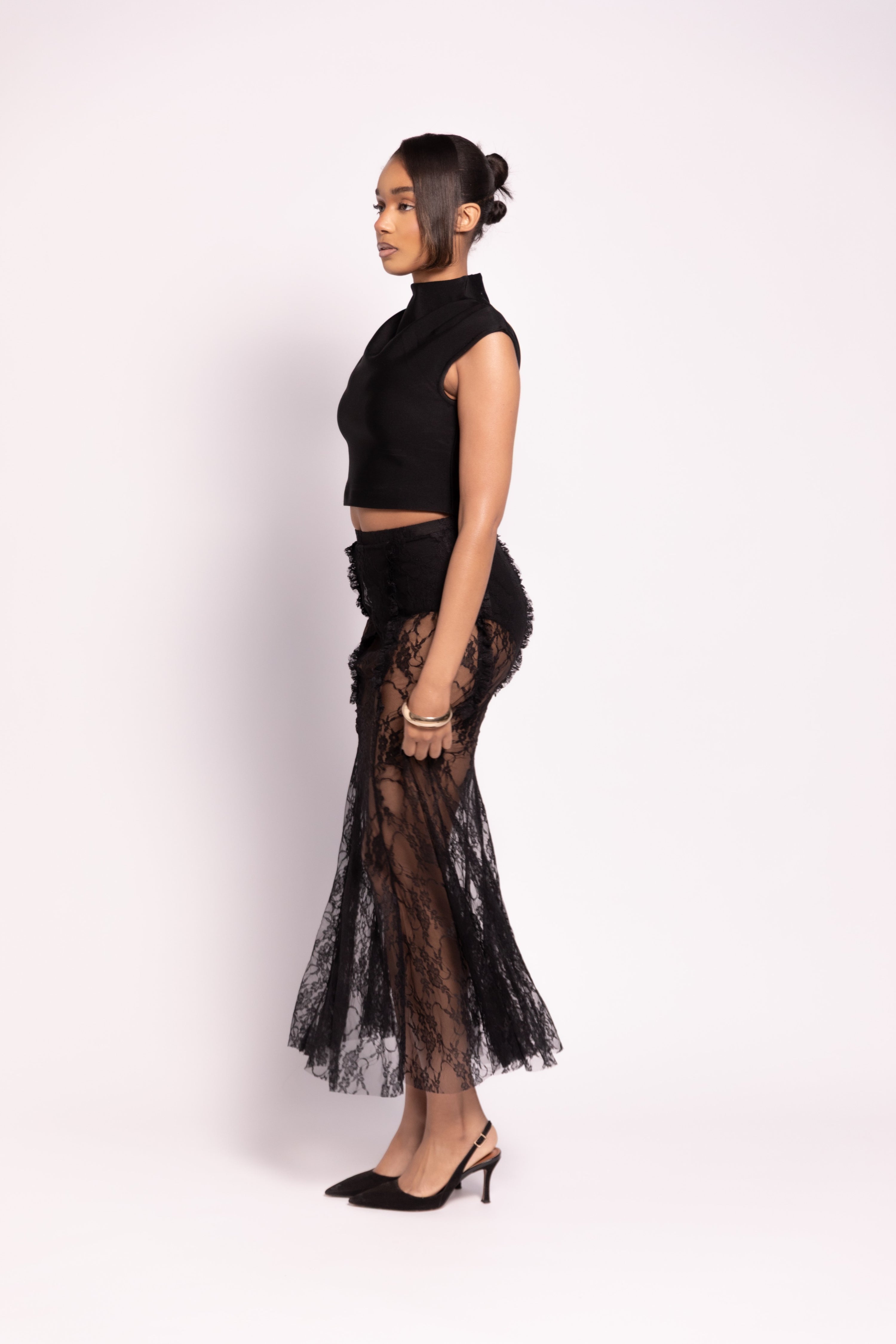 Malika Black Lace Ruffle Maxi Skirt [PRE ORDER]